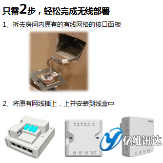 銳捷墻面式 AP,86面板盒大小,只需要替換掉原有的網(wǎng)絡接口面板,不打洞、不施工,不需要停止營業(yè)。